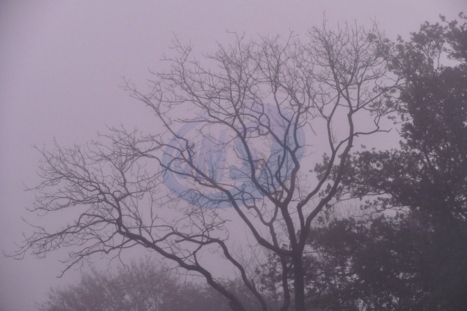There was an eerie mauve tint to the misty skies at dawn over the woods., Credit:Geoffrey Swaine / Avalon