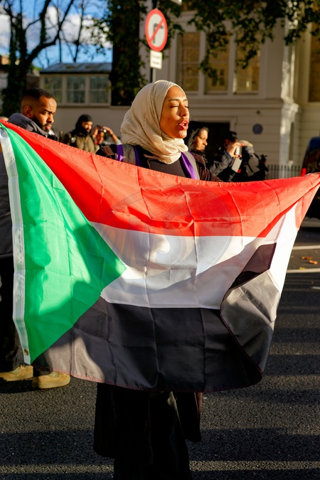 Saturday 8th November. Protest for Sudan. Stop the Genocide in Al-Fashir. London. The march mustered outside Gloucester Road Station, passed through Knightsbridge and ended in Berkeley Square., Credit:Aldo Ciarrocchi / Avalon
