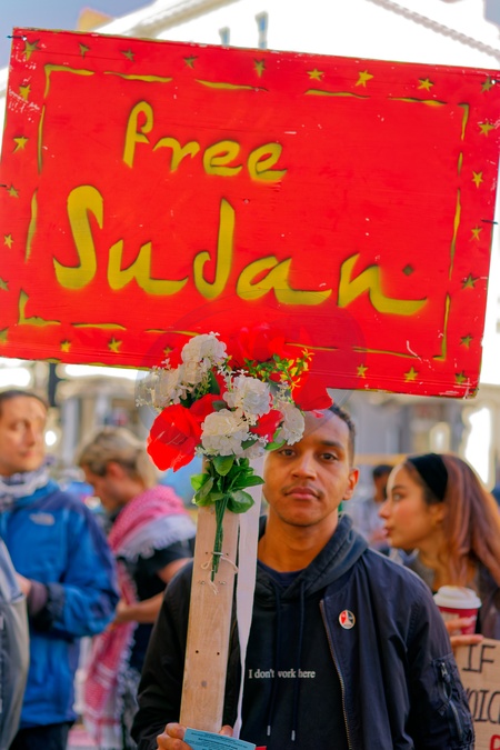 Saturday 8th November. Protest for Sudan. Stop the Genocide in Al-Fashir. London. The march mustered outside Gloucester Road Station, passed through Knightsbridge and ended in Berkeley Square., Credit:Aldo Ciarrocchi / Avalon