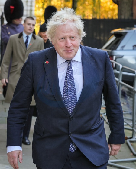 London, UK. 09th Nov, 2025. Boris Johnson, former Prime Minister. Politicians, including the PM, many former Prime Ministers and dignitaries, are seen walking through Downing Street on the way to and from attending the Remembrance Sunday ceremony on Whitehall in Westminster., Credit:Imageplotter / Avalon