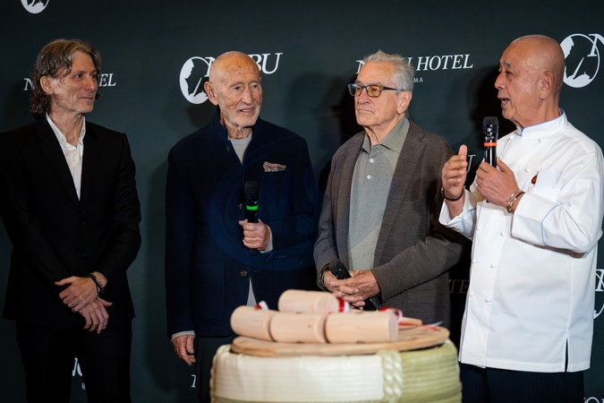Carlo Acampora, Meir Teper, Robert De Niro and chef Nobu Matsuhisa attend the Sakè Ceremony for the opening of Nobu Hotel and Restaurant via Veneto in Rome, Italy on 06 November 2025, Credit:Stefano Costantino TTL / Avalon