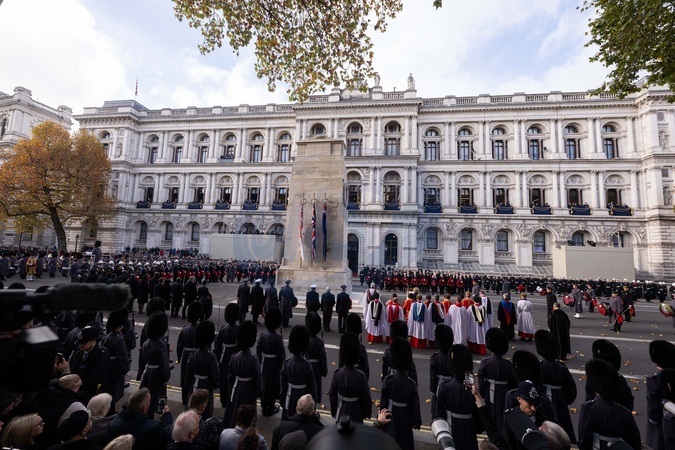 Charles, His Majesty The King leads the UK in the annual two-minute silence to remember those who have fallen and suffered in conflict at the National Service of Remembrance at the Cenotaph. The King is joined by members of The Royal Family, the Prime Minister, senior politicians and faith representatives to mark the Armistice of the First World War and all other conflicts involving British and Commonwealth forces., Credit:Joanne Davidson / Avalon