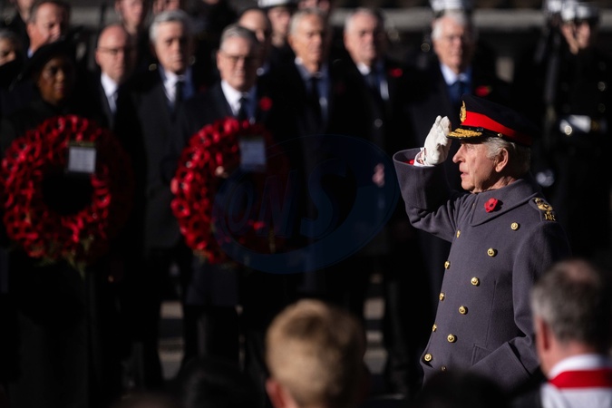 Charles, His Majesty The King leads the UK in the annual two-minute silence to remember those who have fallen and suffered in conflict at the National Service of Remembrance at the Cenotaph. The King is joined by members of The Royal Family, the Prime Minister, senior politicians and faith representatives to mark the Armistice of the First World War and all other conflicts involving British and Commonwealth forces., Credit:Joanne Davidson / Avalon