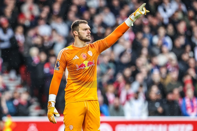 Leeds United goalkeeper Lucas Perri gives his team instructions during the Premier League match Nottingham Forest vs Leeds United at City Ground, Nottingham, United Kingdom, 9th November 2025, Credit:Ae Cosgrove/News Images / Avalon