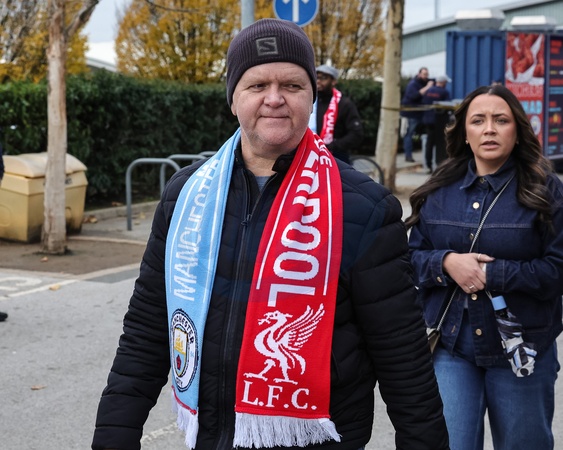 Fans make their way to the ground during the Premier League match Manchester City vs Liverpool at Etihad Stadium, Manchester, United Kingdom, 9th November 2025, Credit:Mark Cosgrove/News Images / Avalon