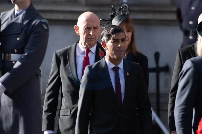 (L-R) - John Healey - Secretary of State for Defence, Former Prime Minister Rishi Sunak, Rachel Reeves - Chancellor of The Exchequer attend a Remembrance Sunday Service in Whitehall in London, England, UK on Sunday 9 November, 2025 to commemorate the contribution of British and Commonwealth military and civilian servicemen and women in the two World Wars and later conflict., Credit:Justin Ng / Avalon