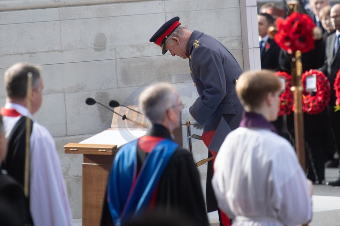 King Charles III attend a Remembrance Sunday Service in Whitehall in London, England, UK on Sunday 9 November, 2025 to commemorate the contribution of British and Commonwealth military and civilian servicemen and women in the two World Wars and later conflict., Credit:Justin Ng / Avalon