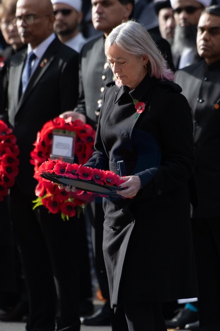 Liz Saville-Roberts - Plaid Cymru leader in Westminster attend a Remembrance Sunday Service in Whitehall in London, England, UK on Sunday 9 November, 2025 to commemorate the contribution of British and Commonwealth military and civilian servicemen and women in the two World Wars and later conflict., Credit:Justin Ng / Avalon