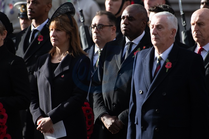(L-R) - Rachel Reeves - Chancellor of The Exchequer, David Lammy - Deputy Prime Minster and Lord Chancellor and Secretary of State for Justice and Lindsay Hoyle - Speaker of The House of Commons attend a Remembrance Sunday Service in Whitehall in London, England, UK on Sunday 9 November, 2025 to commemorate the contribution of British and Commonwealth military and civilian servicemen and women in the two World Wars and later conflict., Credit:Justin Ng / Avalon