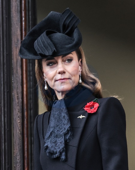 Catherine, Princess of Wales, watches the service of Remembrance from the balcony overlooking the Cenotaph. London, United Kingdom, 09 November 2025., Credit:RICHARD POHLE / Avalon