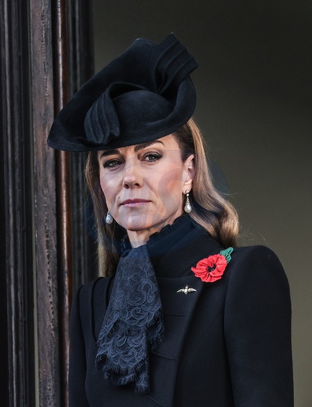 Catherine, Princess of Wales, watches the service of Remembrance from the balcony overlooking the Cenotaph. London, United Kingdom, 09 November 2025., Credit:Richard Pohle / Avalon