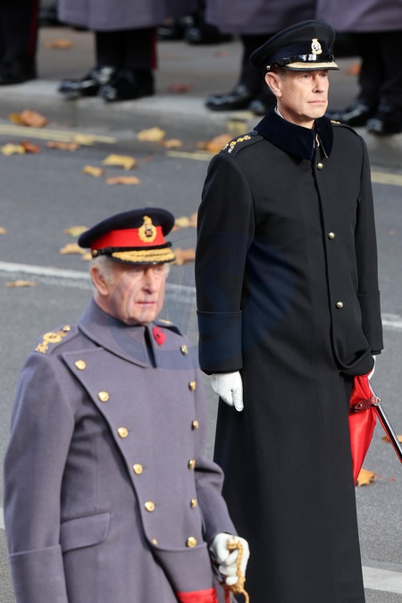 LONDON, ENGLAND - NOVEMBER 09: King Charles III and Prince Edward, Duke of Edinburgh during the 2025 National Service Of Remembrance at The Cenotaph on November 09, 2025 in London, England. Every year, members of the British Royal Family join politicians, veterans and members of the public to remember those who have died in combat., Credit:Chris Jackson / Avalon