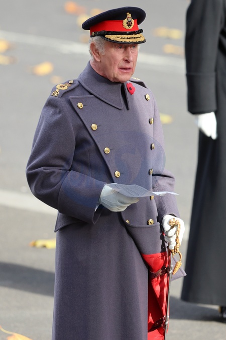 LONDON, ENGLAND - NOVEMBER 09: King Charles III during the 2025 National Service Of Remembrance at The Cenotaph on November 09, 2025 in London, England. Every year, members of the British Royal Family join politicians, veterans and members of the public to remember those who have died in combat., Credit:Chris Jackson / Avalon