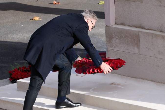 LONDON, ENGLAND - NOVEMBER 09: Prime Minister Keir Starmer lays a wreath during the 2025 National Service Of Remembrance at The Cenotaph on November 09, 2025 in London, England. Every year, members of the British Royal Family join politicians, veterans and members of the public to remember those who have died in combat., Credit:Chris Jackson / Avalon