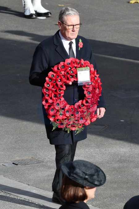 LONDON, ENGLAND - NOVEMBER 09: Prime Minister Keir Starmer lays a wreath during the 2025 National Service Of Remembrance at The Cenotaph on November 09, 2025 in London, England. Every year, members of the British Royal Family join politicians, veterans and members of the public to remember those who have died in combat., Credit:Chris Jackson / Avalon