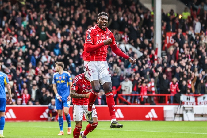 Ibrahim Sangaré of Nottingham Forest celebrates his goal to make it 1-1 during the Premier League match Nottingham Forest vs Leeds United at City Ground, Nottingham, United Kingdom, 9th November 2025, Credit:Ae Cosgrove/News Images / Avalon