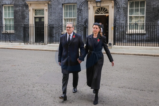 Prime Minister Sir Keir Starmer and wife Lady Starmer on Remembrance Sunday in Downing Street, London, UK