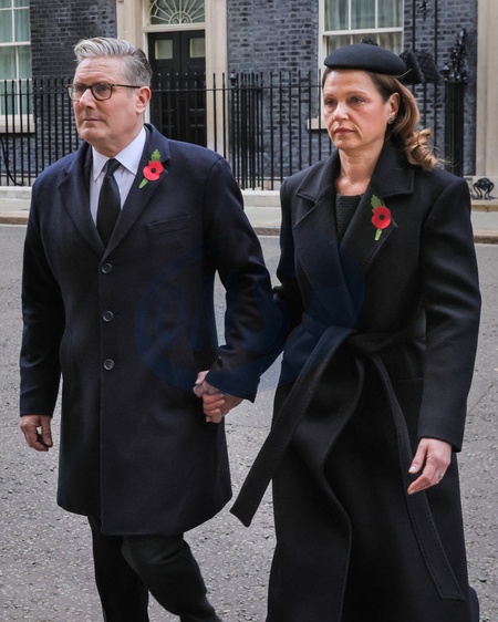 Prime Minister Sir Keir Starmer and wife Lady Starmer on Remembrance Sunday in Downing Street, London, UK