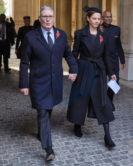 Prime Minister Sir Keir Starmer and wife Lady Starmer on Remembrance Sunday in Downing Street, London, UK