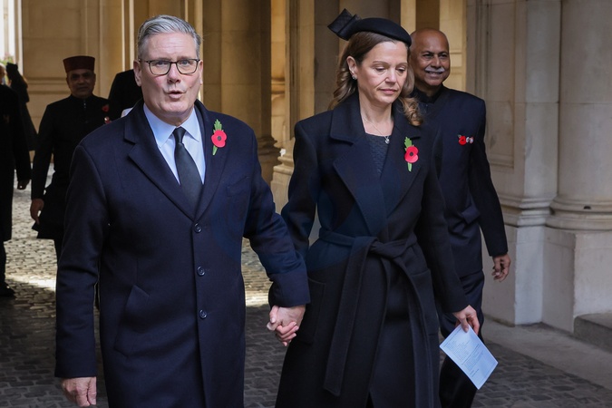 Prime Minister Sir Keir Starmer and wife Lady Starmer on Remembrance Sunday in Downing Street, London, UK