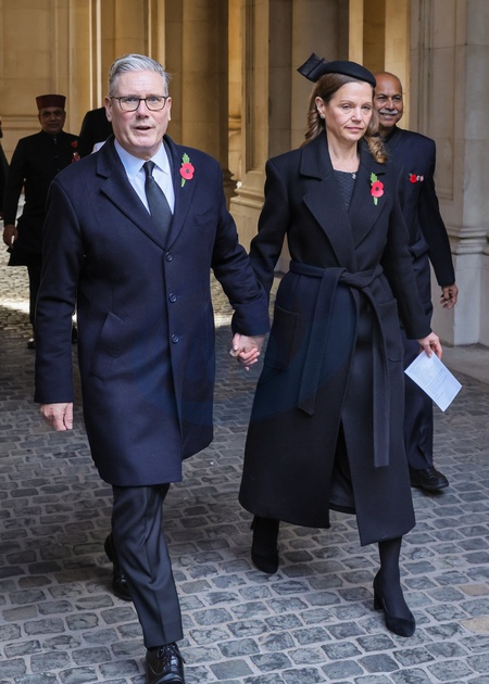 Prime Minister Sir Keir Starmer and wife Lady Starmer on Remembrance Sunday in Downing Street, London, UK