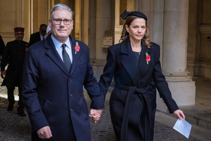 Prime Minister Sir Keir Starmer and wife Lady Starmer on Remembrance Sunday in Downing Street, London, UK