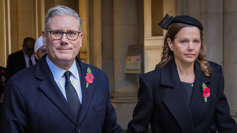 Prime Minister Sir Keir Starmer and wife Lady Starmer on Remembrance Sunday in Downing Street, London, UK