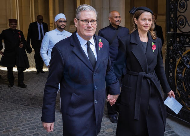 Prime Minister Sir Keir Starmer and wife Lady Starmer on Remembrance Sunday in Downing Street, London, UK