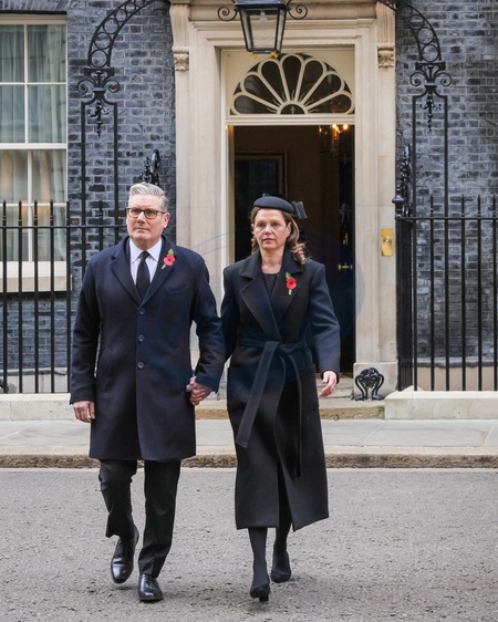 Prime Minister Sir Keir Starmer and wife Lady Starmer on Remembrance Sunday in Downing Street, London, UK