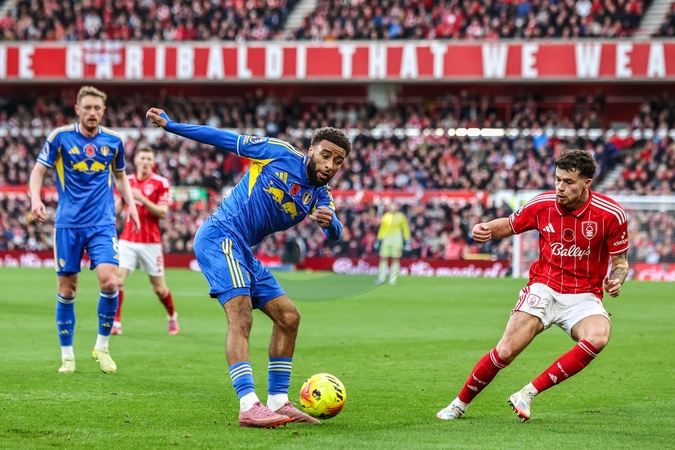 Jayden Bogle of Leeds United clears the ball during the Premier League match Nottingham Forest vs Leeds United at City Ground, Nottingham, United Kingdom, 9th November 2025, Credit:Ae Cosgrove/News Images / Avalon
