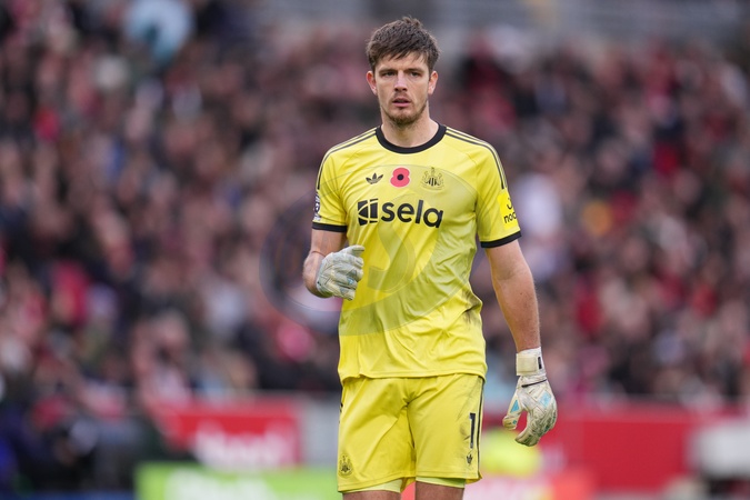Nick Pope of Newcastle United celebrates Harvey Barnes of Newcastle United goal during the Premier League match Brentford vs Newcastle United at The Gtech Community Stadium, London, United Kingdom, 9th November 2025, Credit:Harvey Murphy/News Images / Avalon