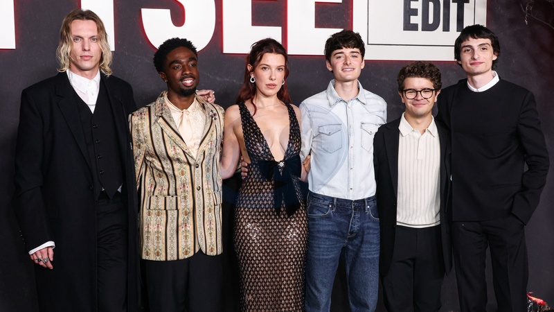 HOLLYWOOD, LOS ANGELES, CALIFORNIA, USA - NOVEMBER 08: English actor and singer Jamie Campbell Bower, American actor, singer, and dancer Caleb McLaughlin, British actress and producer Millie Bobby Brown, Canadian-American actor and entrepreneur Noah Schnapp, American actor and singer Gaten Matarazzo and Canadian actor, musician, director, and recording artist Finn Wolfhard arrive at the Netflix FYSEE: The Fall Edit - 'Stranger Things' Season 5 FYC (For Your Consideration) Event held at the Netflix Tudum Theater on November 8, 2025 in Hollywood, Los Angeles, California, United States., Credit:Xavier Collin / Avalon
