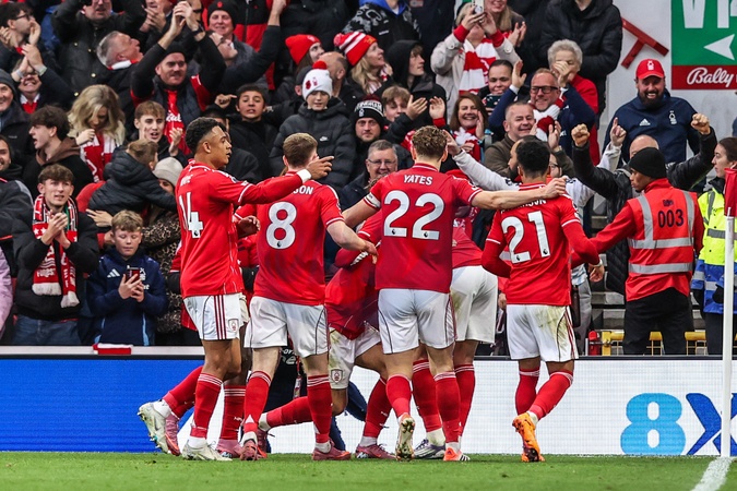 Morgan Gibbs-White of Nottingham Forest celebrates his goal to make it 2-1 during the Premier League match Nottingham Forest vs Leeds United at City Ground, Nottingham, United Kingdom, 9th November 2025, Credit:Ae Cosgrove/News Images / Avalon