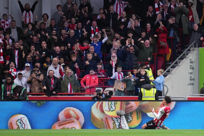 Kevin Schade of Brentford celebrates equaliser to make it 1-1 during the Premier League match Brentford vs Newcastle United at The Gtech Community Stadium, London, United Kingdom, 9th November 2025, Credit:Harvey Murphy/News Images / Avalon