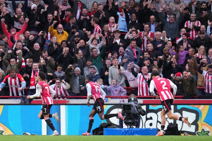 Brentford players celebrate 1-1 equaliser during the Premier League match Brentford vs Newcastle United at The Gtech Community Stadium, London, United Kingdom, 9th November 2025, Credit:Harvey Murphy/News Images / Avalon