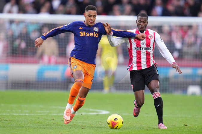 Dango Ouattara of Brentford and Jacob Ramsey of Newcastle united battle during the Premier League match Brentford vs Newcastle United at The Gtech Community Stadium, London, United Kingdom, 9th November 2025, Credit:Harvey Murphy/News Images / Avalon