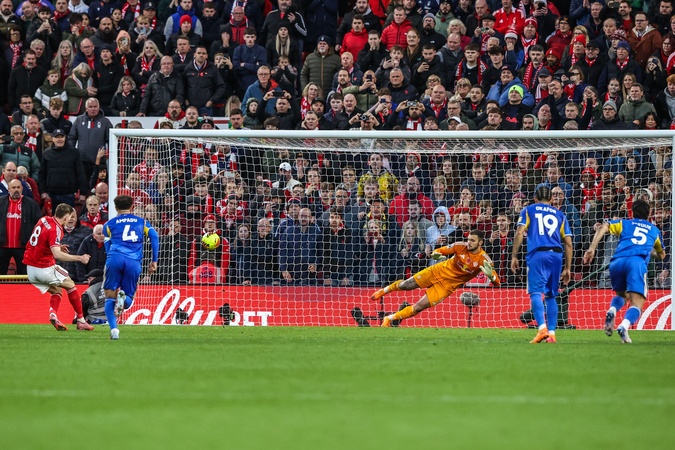 Elliot Anderson of Nottingham Forest scores a penalty to make it 3-1 during the Premier League match Nottingham Forest vs Leeds United at City Ground, Nottingham, United Kingdom, 9th November 2025, Credit:Ae Cosgrove/News Images / Avalon