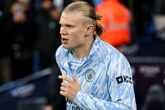 Erling Haaland of Manchester City warms up ahead of the Premier League match Manchester City vs Liverpool at Etihad Stadium, Manchester, United Kingdom, 9th November 2025, Credit:Mark Cosgrove/News Images / Avalon