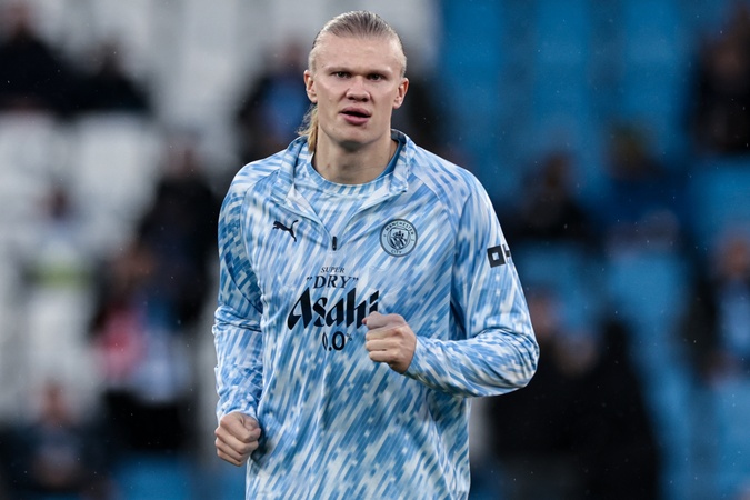 Erling Haaland of Manchester City warms up ahead of the Premier League match Manchester City vs Liverpool at Etihad Stadium, Manchester, United Kingdom, 9th November 2025, Credit:Mark Cosgrove/News Images / Avalon