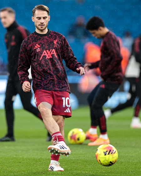 Alexis Mac Allister of Liverpool warms up ahead of the Premier League match Manchester City vs Liverpool at Etihad Stadium, Manchester, United Kingdom, 9th November 2025, Credit:Mark Cosgrove/News Images / Avalon