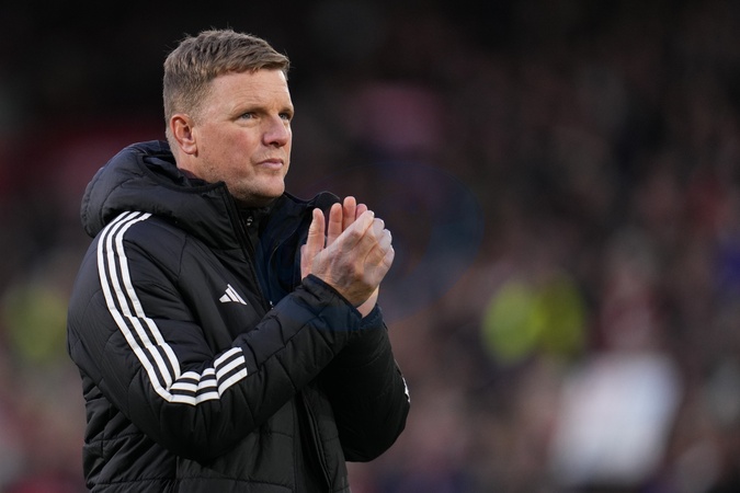 Eddie Howe manager of Newcastle United applauds away support during the Premier League match Brentford vs Newcastle United at The Gtech Community Stadium, London, United Kingdom, 9th November 2025, Credit:Harvey Murphy/News Images / Avalon
