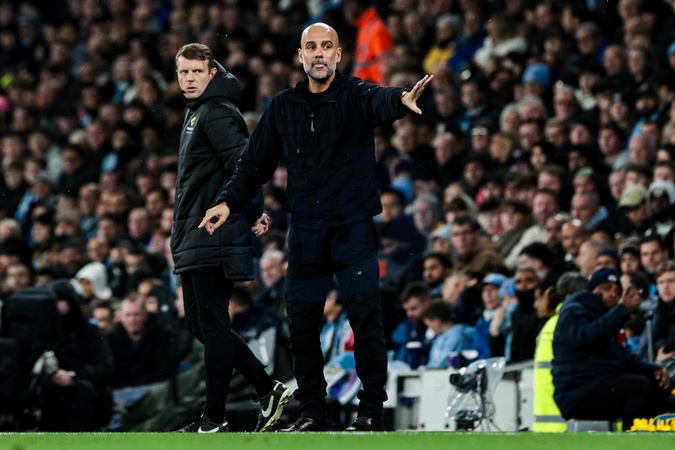 Pep Guardiola Manchester City manager during the Premier League match Manchester City vs Liverpool at Etihad Stadium, Manchester, United Kingdom, 9th November 2025, Credit:Mark Cosgrove/News Images / Avalon