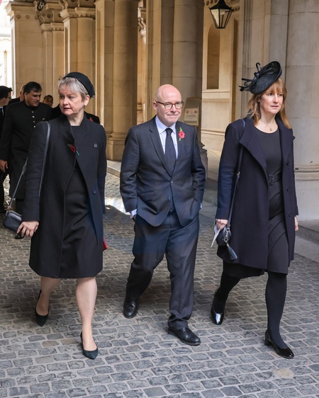 Rachel Reeves, Yvette Cooper, Richard Hermer on Remembrance Sunday in Downing Street, London, UK