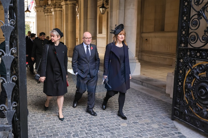 Rachel Reeves, Yvette Cooper, Richard Hermer on Remembrance Sunday in Downing Street, London, UK