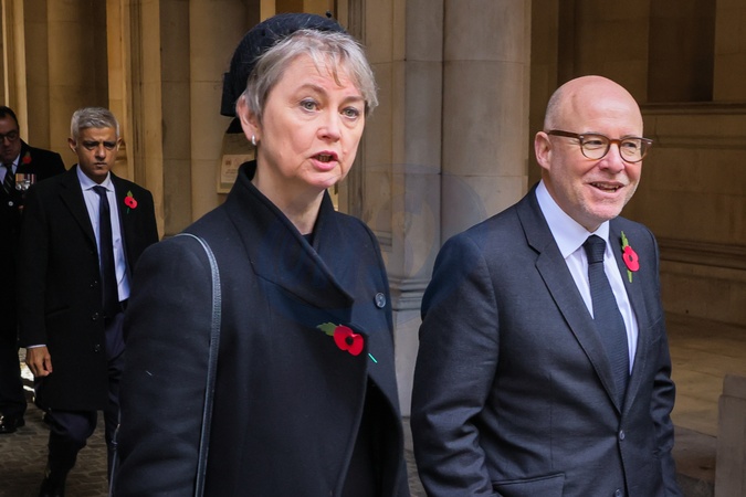 London, UK. 09th Nov, 2025. Yvette Cooper, Foreign Secretary and Richard Hermer, Attorney General, on the way back, Sadiq Khan behind. Former Prime Ministers and dignitaries, are seen walking through Downing Street on the way to and from attending the Remembrance Sunday ceremony on Whitehall in Westminster., Credit:Imageplotter / Avalon