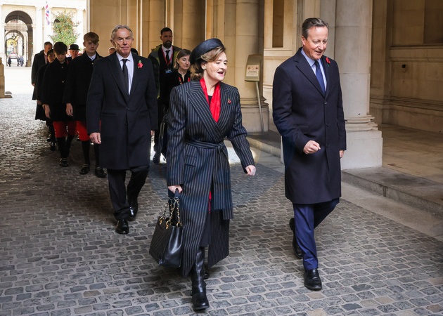 London, UK. 09th Nov, 2025. Sir Tony Blair, former Labour Prime Minister and wife Lady Cherie Blair, with former Prime Minister David Cameron. Politicians, including the PM, many former Prime Ministers and dignitaries, are seen walking through Downing Street on the way to and from attending the Remembrance Sunday ceremony on Whitehall in Westminster., Credit:Imageplotter / Avalon