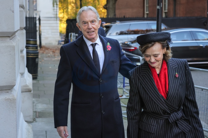 London, UK. 09th Nov, 2025. Sir Tony Blair, former Labour Prime Minister and wife Lady Cherie Blair. Politicians, including the PM, many former Prime Ministers and dignitaries, are seen walking through Downing Street on the way to and from attending the Remembrance Sunday ceremony on Whitehall in Westminster., Credit:Imageplotter / Avalon
