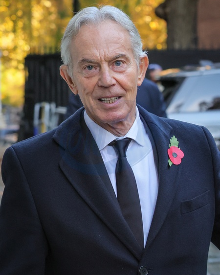 London, UK. 09th Nov, 2025. Sir Tony Blair, former Labour Prime Minister and wife Lady Cherie Blair. Politicians, including the PM, many former Prime Ministers and dignitaries, are seen walking through Downing Street on the way to and from attending the Remembrance Sunday ceremony on Whitehall in Westminster., Credit:Imageplotter / Avalon