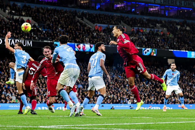 Virgil van Dijk of Liverpool scores goal but ruled offside during the Premier League match Manchester City vs Liverpool at Etihad Stadium, Manchester, United Kingdom, 9th November 2025, Credit:Mark Cosgrove/News Images / Avalon
