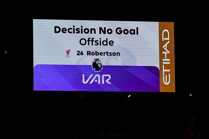 Virgil van Dijk of Liverpool goal to make it 1-1 ruled out for offside displayed on the big screen during the Premier League match Manchester City vs Liverpool at Etihad Stadium, Manchester, United Kingdom, 9th November 2025, Credit:Mark Cosgrove/News Images / Avalon